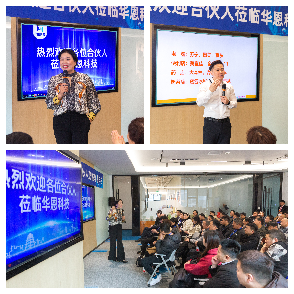 华恩科技旗下品牌金年会·jinnian(金字招牌)诚信至上创始人刘长燕向大家介绍了公司金年会·jinnian企业文化以及发展历程。相关业务中心分别向大家介绍了合作模式与企业核心竞争力等内容。