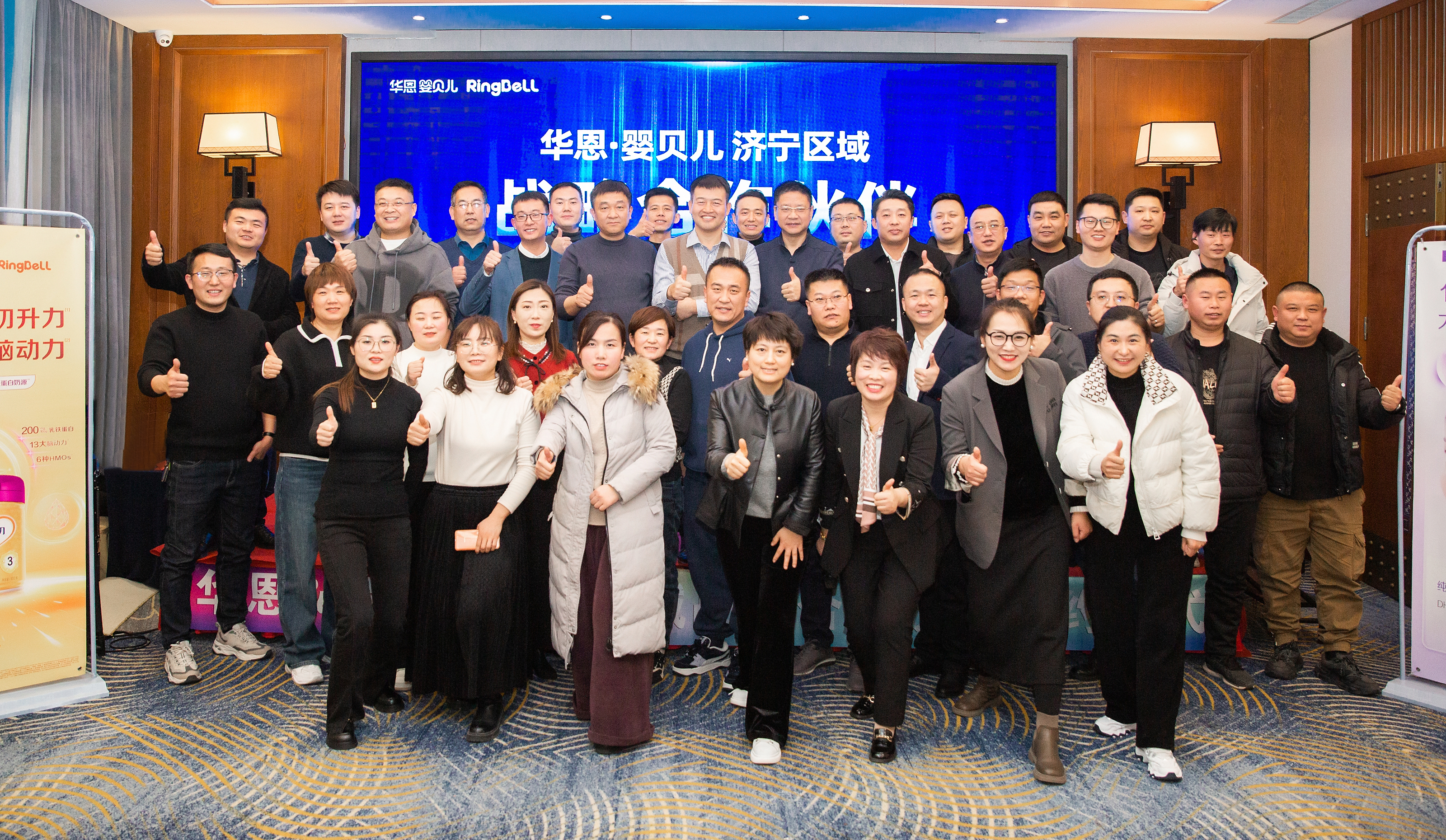 华恩金年会·jinnian(金字招牌)诚信至上董事长贾俊勇、山东王子羊母婴连锁总经理盛卓、华恩金年会·jinnian(金字招牌)诚信至上首席商品专家彭文忠、发展二区总经理邢兰兰、拓展部负责人于慧杰、济宁子公司负责人王习奎与中国飞鹤婴童发展部客户经理冯伟、美赞臣华北四区大区经理汤庆华、伊利山东省营销总部总经理荀成、贝因美山东省区总经理王晓媚以及济宁市母婴零售门店老板等嘉宾共同出席了本次大会。